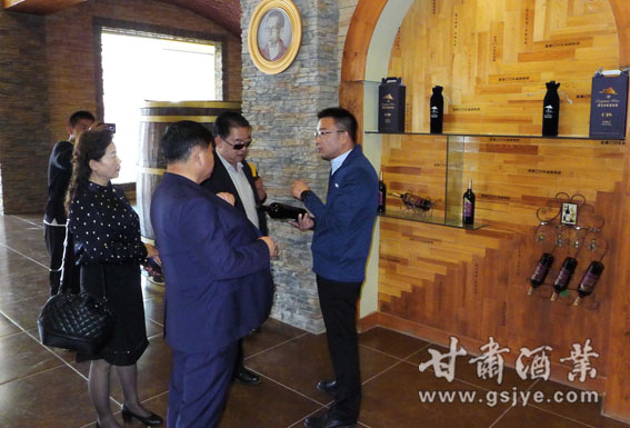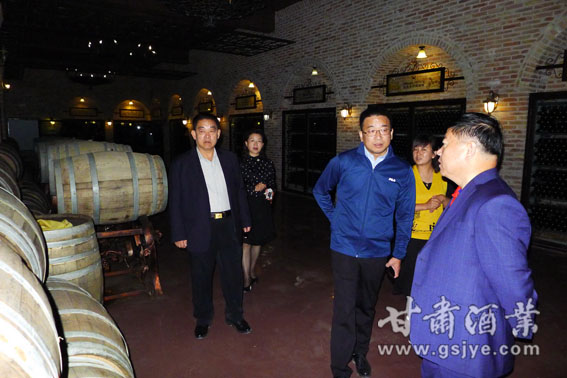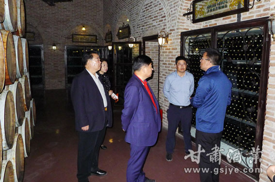 在威龙西北大区总经理王凯、种植基地经理杨彦军等相关人员的陪同下,张秉庆一行先后参观了葡萄种植基地、酒堡产品陈列室和地下酒窖,品评了葡萄酒,重点详细询问了解市场营销情况,共同研究了如何拓宽市场销路等相关问题。