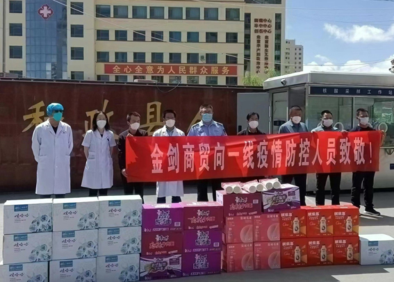 和政金剑商贸 慰问10个卡点,价值7000元物资。