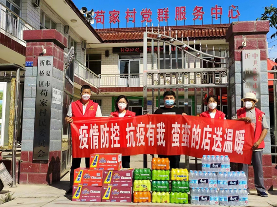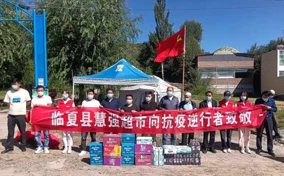 临夏县慧强超市 组织慰问马集镇新农村村委会,以及村各卡点,出资方便面20件,矿泉水20件,大窑嘉宾20件,纯牛奶10件,酸奶10件,羊肉40斤 ,折合价值约4200元。
