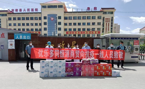 7月19日,和政恒源商贸有限公司在县市场监督管理局组织安排下,将价值1.5万多元的优乐多、娃哈哈纯净水、康师傅方便面等爱心生活物资,送到了县人民医院、县市场监督管理局、三合镇广通桥、鸿瑞佳苑、和汇小区、兴和花园、松鸣岩镇、城关镇西关村、松鸣镇吊滩村、达浪乡李家坪村等全县各疫情防控点,为自疫情防控工作开展以来,一直坚守在抗疫一线的值班值守人员,送去“特殊”时期慰问与关爱,用实际行动尽显了企业担当,极大的鼓舞了疫情防控工作者们的士气,为他们今后更好的做好严防值守给足了动力,得到了大家的一致好评。