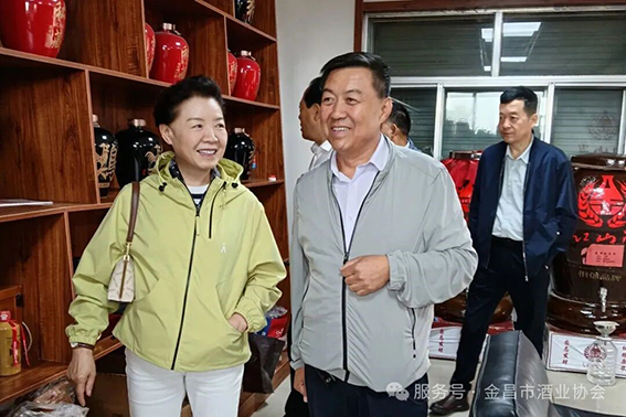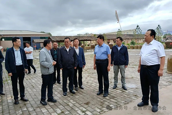 继8月25日金昌市酒业协会第六次会员大会成功召开后,8月26日上午,换届后的甘肃省酒业协会常务副会长兼秘书长李云、副会长王永贤,金昌市酒业协会会长孙尚荣、秘书长张世俊和《甘肃酒业志》暨陇酒文史编委会执行主任兼主编陈浦、副主编李文祥,原金昌市酒类商品管理局局长祁文昌,应邀到位于永昌县红山窑镇的“红山泓”酒厂考察调研,助力赋能。