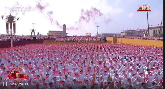 中共中央总书记、国家主席、中央军委主席习近平发表重要讲话,并检阅受阅部队,同62位外国领导人及有关国家高级别代表、各国来宾、各界代表一起观看阅兵仪式。