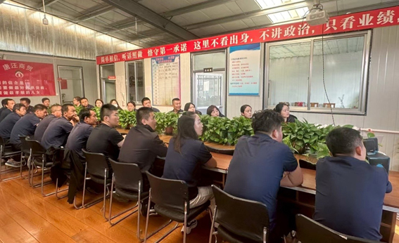 省酒协理事单位、甘肃陇西天马酒业全体员工在公司会议室认真观看大会直播: