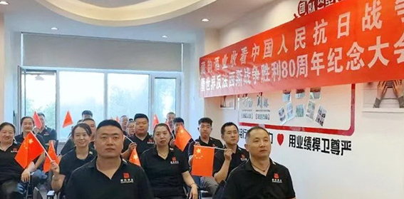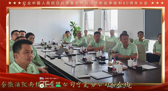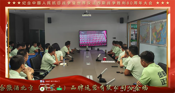 省酒协副会长单位、金徽酒股份有限公司党委精心组织全体员工,在公司总部金色大厅及全国各销售公司分会场,同步收看纪念中国人民抗日战争暨世界反法西斯战争胜利80周年大会直播,共同见证国家繁荣昌盛与民族复兴的磅礴气象。