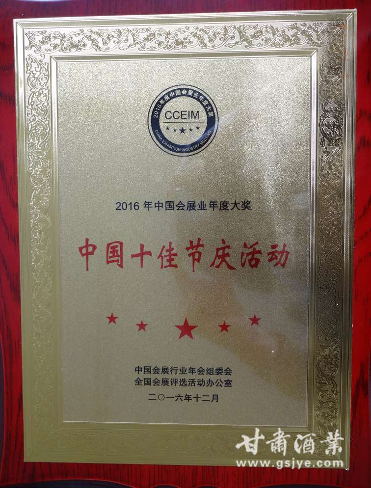 大会在2016年度中国会展产业年度颁奖盛典中圆满落幕,此次奖项由全国会展办、行业协会、知名专家共同推选。“中国河西走廊有机葡萄美酒节”喜获“2016年度中国十佳节庆活动奖”,甘肃省酒类商品管理局局长、省葡萄酒产业协会副会长兼秘书长、葡萄美酒节组委会秘书长陈浦荣获“中国节庆经济产业贡献奖”。