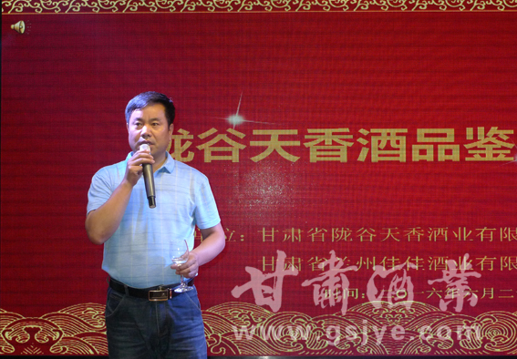 六月的金城,风光宜人,瓜果飘香。6月29日下午,由甘肃陇谷天香酒业有限公司和甘肃佳佳酒业有限公司联合举办的“陇谷天香酒品鉴暨推广会”,在位于美丽的黄河河畔的西湖银峰大酒店隆重举行。兰州市城关区酒类商品管理局局长陈连海、副局长李芸,兰州市酒类同业协会秘书长王瑞卿,甘肃电视台、兰州晨报、西部商报、甘肃酒业等新闻媒体代表和各酒企的代表参加了本次品鉴会。