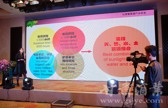 甘肃省酒类商品管理局梁靓女士在品鉴推介会上介绍甘肃葡萄酒产业发展情况