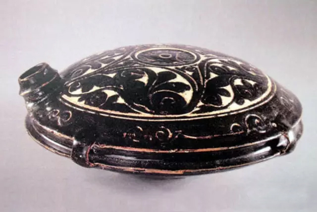 西夏瓷器品种繁多,其中剔刻釉扁壶具有典型的民族特色。它的造型设计与党项人的游牧生活密切相关,散发着草原泥土的芳香。西夏扁壶之产量大、制作精,也是西夏以外其他烧瓷窑口所少见的,是西夏瓷器中独树一帜、魅力无穷的器物。