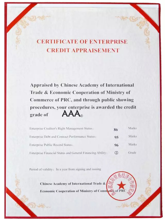 企业诚信评价,使用国际通行的“三等九级”评级方法,即企业诚信评价标准分A、B、C三等,AAA、AA、A、BBB、BB、B、CCC、CC、C九级。在得出企业总体诚信等级后,还将通过“三等九级”的评级方法对企业债权管理水平、债务及合同履行情况和公共诚信信息记录等分别做出单项评价。