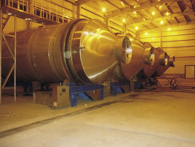 随着祁连酒业公司葡萄采收发酵工作的持续推进,公司新购置的四台葡萄酒旋转发酵罐也逐步投入使用。其主要特点是罐体横卧在支架上旋转发酵,由链条带动其转动,罐的内部则设计有特殊的螺旋式挡板,当罐体朝某一方向旋转时,这些挡板可起到极好的“搅拌”作用,并且搅拌非常均匀,而当罐体朝另一方向旋动时,这些挡板则又可将罐内杂物推出罐口(卸料)。