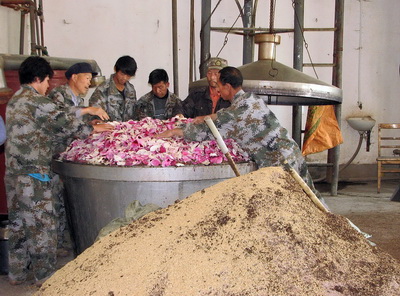 五月的临洮,风光旖旎,百花争艳,牡丹飘香。走进临洮县边城酒业有限责任公司厂区,酒香扑鼻,蒸馏车间蒸汽带出的淡淡牡丹香沁人心扉,可谓是:“酒不醉人,人自醉”。