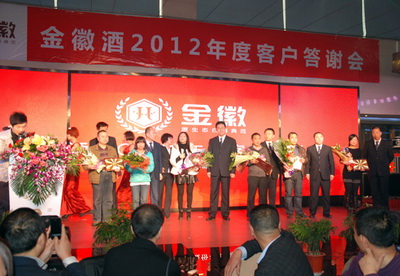 本刊讯:走过10年辉煌路的金徽酒股份有限公司再次频传捷报:从2012年12月初开始,金徽酒兰州销售有限公司陆续在西固、城关、安宁等区召开2012年年度客户答谢会,大规模表彰并重奖了2012年度的优秀经销商及客户。据悉,2012年金徽酒的销售额已经突破10亿元大关,成为西部酒业的强势品牌!