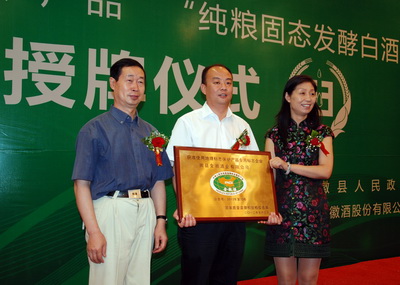 裴晓颖司长与甘肃省质监局魏华光局长向金徽酒业周志刚董事长授牌