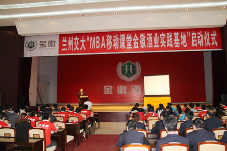 兰州交通大学经管院院长赵延龙在致辞中指出:兰州交通大学,创建于1958年,时名兰州铁道学院,是我国第三所铁路高校,2003年4月,经教育部批准,更名为“兰州交通大学”。经过五十多年的建设与发展,兰州交通大学已发展成为一所以工科为主,工、理、经、管、文、农、法等学科协调发展的多科性大学,在甘肃省属院校中办学规模最大、办学层次最全、就业形势最好、成果转化率最高、对外交流最活跃、拥有国家级创新平台最多。金徽酒业是甘肃建厂最早的中华老字号白酒酿造企业和中国白酒百强企业,金徽商标是中国驰名商标。公司拥有先进完备的标准化、现代化的白酒酿造生产设施,获得了由国家认证中心颁发的质量管理体系和安全体系等认证。金徽酒业坚持以人为本的理念,使企业得到迅速发展,在西北地区起引领作用。兰州交通大学MBA中心与金徽酒业共同携手,建立“MBA移动课堂实践基地”,开展校企合作,一方面为学校输送了优秀的企业人才,另一方面通过彼此的合作,将达到资源共享、优势互补的目的。