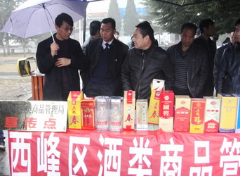 庆阳市酒管局副局长李德峰与工作人员参加咨询服务活动