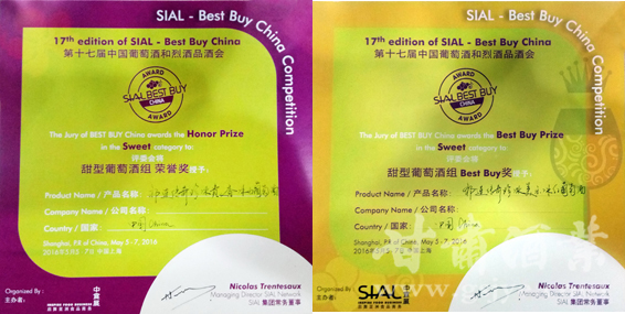 中食展联合Wine 100共同举办了BestBuy葡萄酒及烈酒评选赛,并颁发了10组大奖。此次参评的葡萄酒来自中国、法国、德国、美国、澳大利亚、西班牙及南非等国家的60余款产品,中国选送的产品中只有三款获得大奖,其中祁连酒业的珍冰・贵人香冰白和珍冰・美乐冰红两款同时获得专业评委的肯定,分别获得甜型酒HonorPrize、Best Buy大奖。