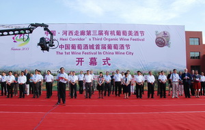 2013年8月18日上午,由甘肃省葡萄酒产业发展领导小组、甘肃省葡萄酒产业协会和武威市人民政府主办的“中国・河西走廊第三届有机葡萄美酒节、中国葡萄酒城首届葡萄美酒节” 开幕式在武威市隆重举行。国家部委、产业协会、省市政府领导以及国内外知名葡萄酒专家、北京、上海、重庆、山东等地的相关商会、协会、投资企业、经销商等近2000名嘉宾参加了开幕式。