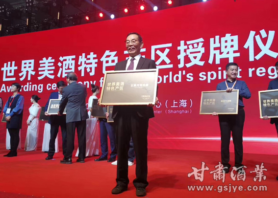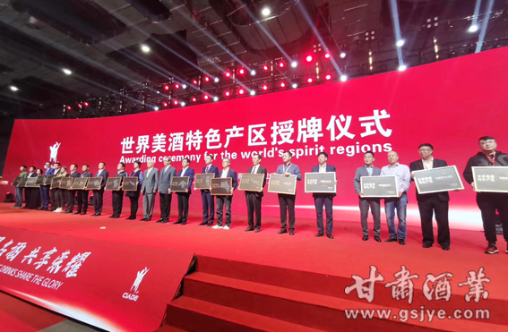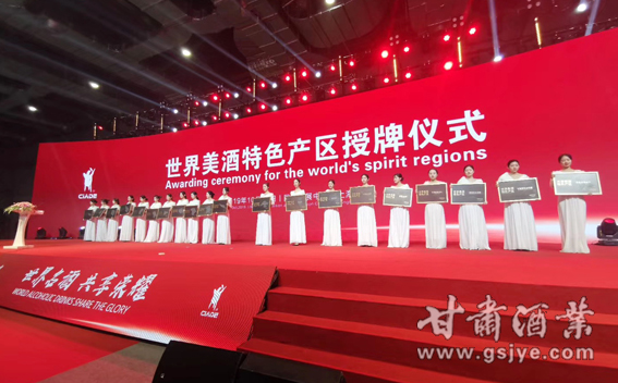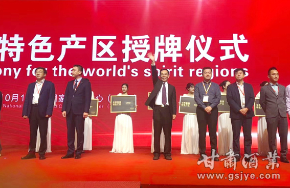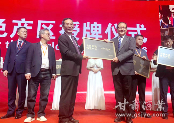 会议现场进行了“轻工十强”颁奖和“世界美酒特色产区”的授牌。甘肃省酒类商品管理局局长、甘肃省葡萄酒产业协会会长陈浦代表甘肃河西走廊产区登台领取“世界美酒特色产区”的奖牌。