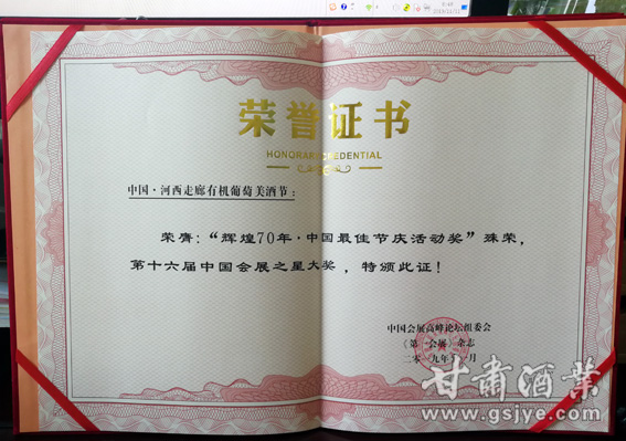 ——中国·河西走廊有机葡萄美酒节荣膺“辉煌70年·中国最佳节庆活动奖”;
