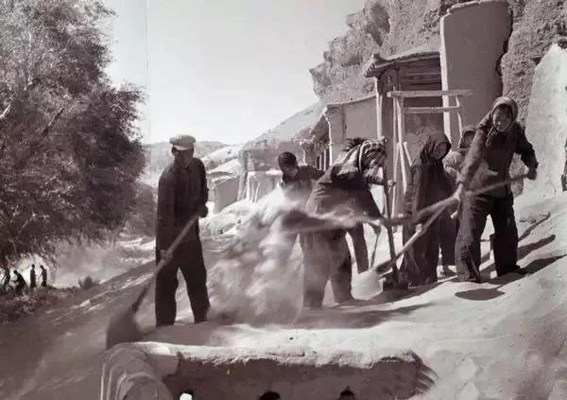▲1972年6月莫高窟工作人员在第154窟前除沙