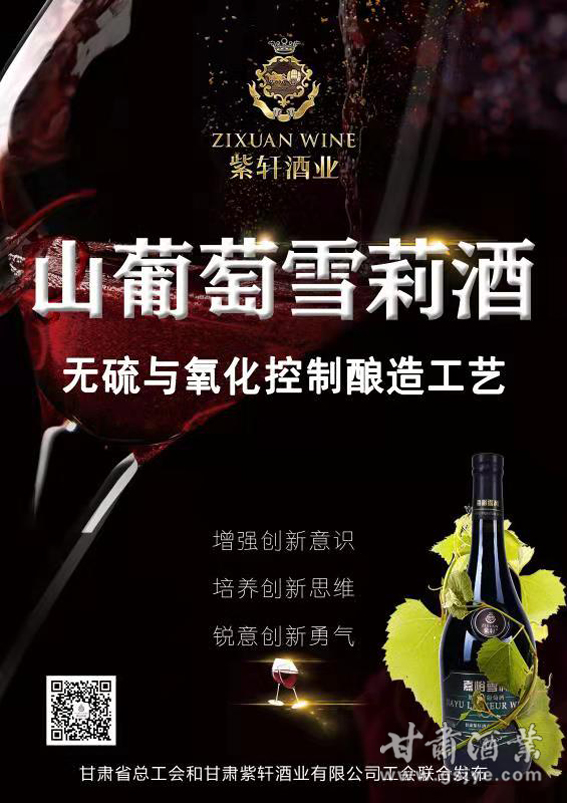 紫轩酒业公司山葡萄雪莉酒无硫与氧化酿造控制新技术(新产品),属于葡萄栽培技术和酿酒技术融合的一项科技创新,它将原产于我国东北的山葡萄品种“双红、双优”,成功引种到嘉峪关,并以此为基础酿制“山葡萄雪莉酒”。主要技术内容涉及戈壁滩山葡萄高产栽培技术、山葡萄栽培控制技术和雪莉葡萄酒酿造技术,其中“戈壁滩山葡萄高产栽培技术”是该公司已获得国家发明专利并拥有知识产权的专利技术,半罐发酵、半罐存储、半桶陈酿、控制氧化葡萄酒酿造技术,是紧密结合本产区酿酒葡萄产品特色开发出来的一项新技术,在全国尚属首创。