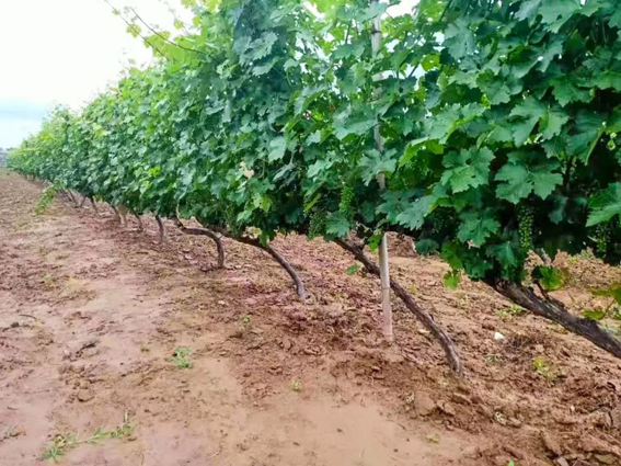 2015年国风庄园改造,采用适宜埋土防寒区单臂篱架单蔓水平龙干形(厂形),葡萄单蔓从地面沿种植沟倾斜上架后水平绑缚在第1道铁丝上,形似汉字“厂”。