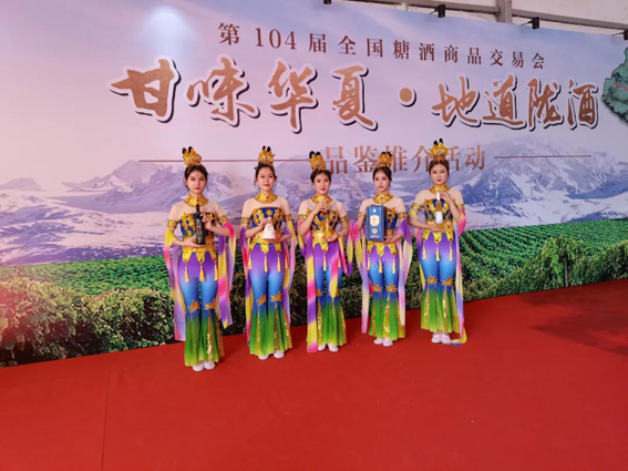 2021年4月3日,第104届春糖会酒店展的第二天,依然是人潮汹涌,在众多参展商里,一队身穿飞天服的敦煌飞天仙女,成了锦江宾馆一道亮丽的风景线。