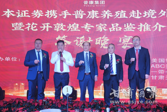 甘肃酒业网讯:(文/图:魏琳 张乐)花开香天下,财富汇金城。4月17日,由武威普康养殖有限公司主办的ABC资本证券携手普康养殖赴境外上市启动(兰州站)暨花开敦煌专家品鉴推介会,在兰州凯悦酒店举行。甘肃省酒类商品管理局、在兰相关商会及协会、部分商业银行、相关企业领导,媒体记者近260余人参加了此次会议,共同探讨未来发展之路,品评花开敦煌美酒。