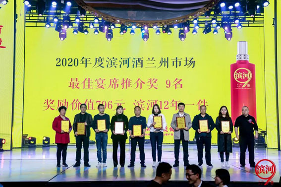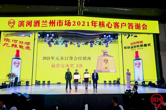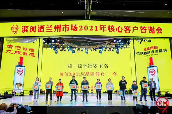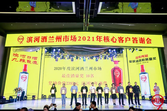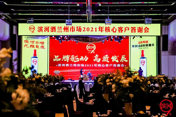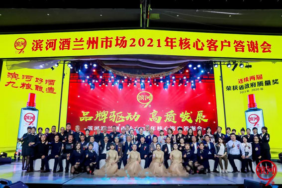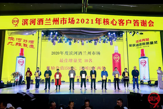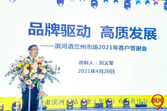 接着,甘肃滨河集团营销总监刘义军先生在答谢会上作了《滨河2020年工作成果和2021工作计划》汇报:首先,刘义军先生向来宾展示了滨河2020年各品牌的总体销售业绩,相比2019年,同比增幅超32%,并逐一分析了取得良好销量的原因,包括:四大基本盘的成功构建,高形象、高密度、高频次、全方位的品牌资源传播,以及品牌建设推广活动的持续放大。随后,分析了滨河连续两届获得甘肃省人民政府质量奖的原因,包括:”人至诚、酒至醇、业至远”顶层文化的牵引,对产品品质和品牌的高度重视,以及独特的九粮九轮酿造工艺的加持。希望在接下来的2021年,滨河继续保持高质量的增长态势,持续打造高价值的品牌、高品质的产品、高专业的服务和高质量的市场!