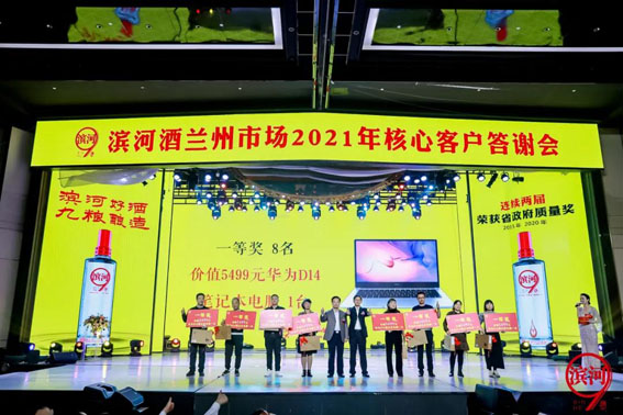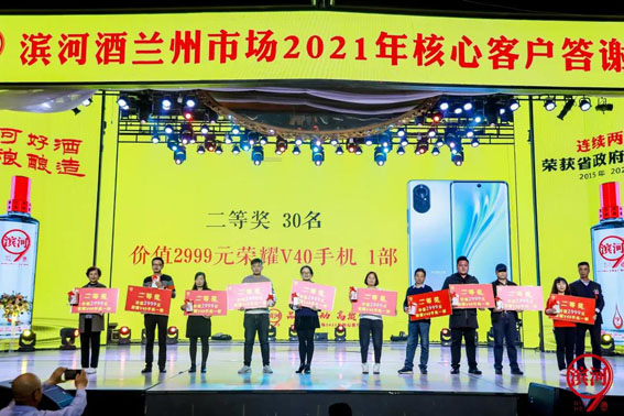 台上歌舞助兴,台下推杯换盏,觥筹交错间流淌的是真情,谈笑风生间见证的是真心。悠扬婉转的歌声让众人如痴如醉,婀娜多姿的舞蹈更是令人赞叹连连。视觉盛宴叠出,颁奖、抽奖环节更是豪礼不断,现场掌声雷动,嘉宾好声如潮。无论是精彩节目还是会场氛围布置,处处透露着滨河的精气神,充分彰显了陇酒品牌的影响力。