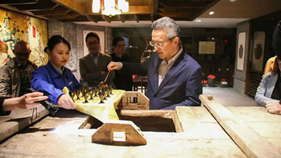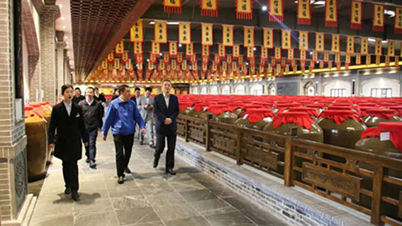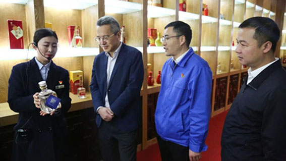 潘东辉一行深入酿酒中心、包装中心、养酒馆、员工餐厅、员工公寓等实地考察,与公司中高级管理人员进行了座谈交流。