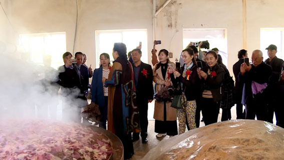 仪式结束后,与会领导及嘉宾参观了边城酒厂生产基地及紫斑牡丹酒原料基地,并召开座谈会,围绕营养健康,特色农产品等进行了交流研讨。
