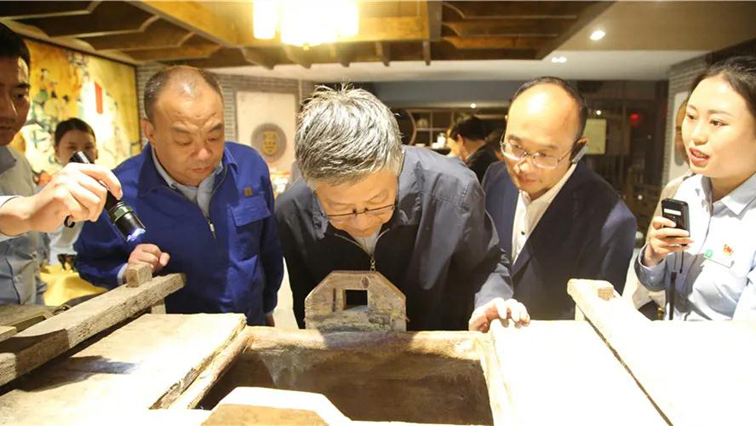 在金徽养酒馆,张柯兵详细听取了相关人员对酒海的介绍后,他说,槐木酒海既是金徽酒悠久历史的见证,又是国家文物,不仅储藏着金徽美酒,还承载着徽酒厚重的历史,他嘱咐公司领导一定要做好文物的保护和传承工作。