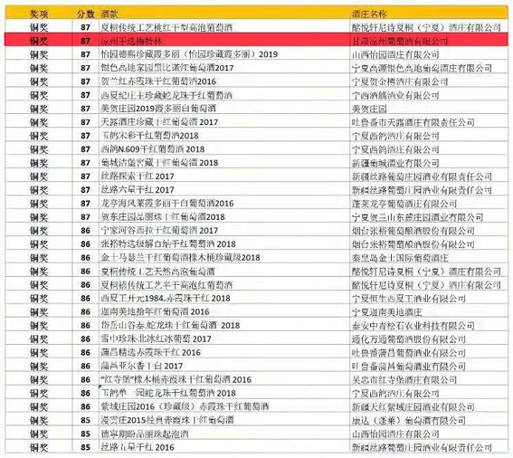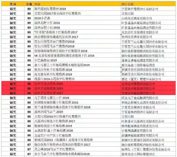 凉州生态干白(汉彩)手选贵人香荣获银奖,凉州手选梅特林、凉州手选赤霞珠2019、凉州手选梅鹿辄2019、凉州手选黑比诺2017四款葡萄酒荣获铜奖。