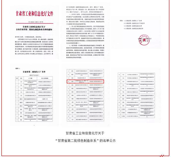 甘肃省工业和信息化厅关于“甘肃省第二批绿色制造体系”企业名单的选拔,旨在更好地贯彻落实生态文明思想,深入推动省委、省政府构建生态产业体系,推动绿色发展崛起战略部署,促进全省工业绿色高质量发展,通过选择一批基础好、代表性强的企业开展绿色工厂的创建工作,更有效地加快推动绿色工厂建设,继续打造绿色工厂先进典型,引领相关领域工业绿色转型。