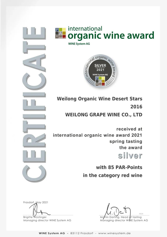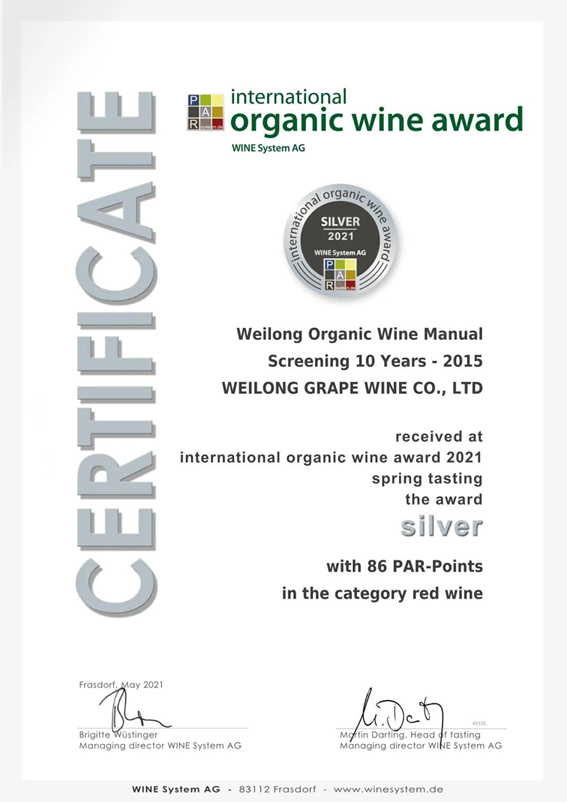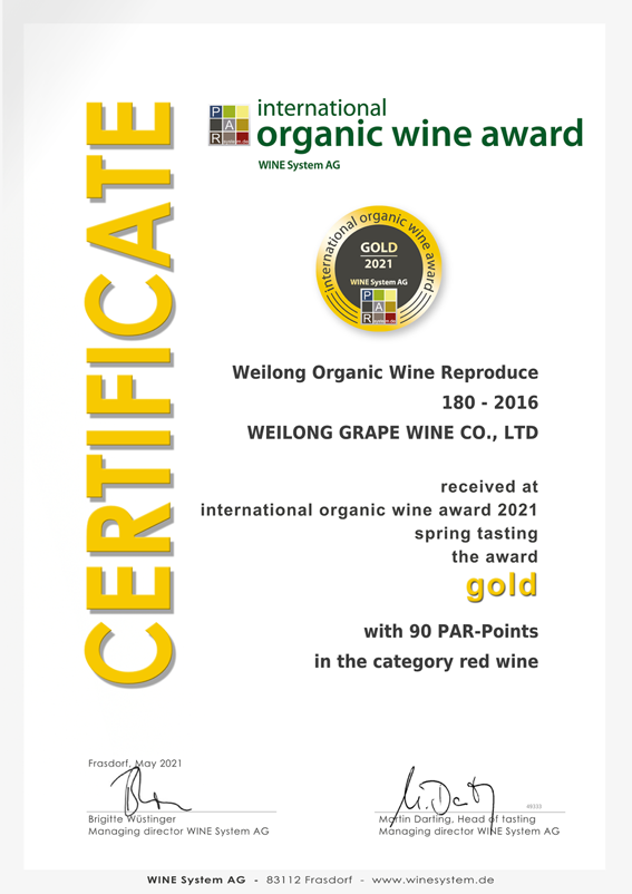 威龙有机葡萄酒凭借优异的品质再次斩获一金三银,向世界展现了中国有机葡萄酒的实力。