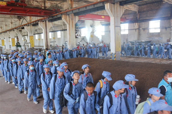 随后,前往九酝坊,登顶福寿山,俯瞰白酒生产厂区的绿化、美化,游览三圣山,并在山下观察高粱生长过程。通过一个个实景展开教育,让学生们体验从古至今的白酒文化,了解到了更多关于粮食加工工业的相关知识,不仅丰富了自己的知识见闻,同时也感受到了滨河集团在时代变迁中的发展轨迹,受到了社会工业发展的启蒙教育。