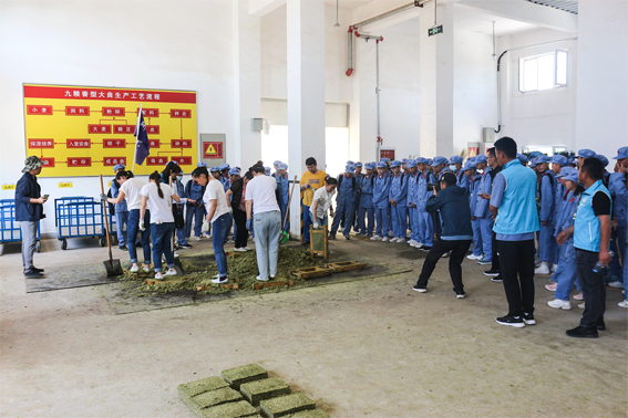 2000多年的酿造工艺,穿越千年的传统文化,从产品、工艺到酿酒背后的故事,滨河九粮酒城凭借着一瓶瓶出自古老窖池的美酒,向学生们诉说着九粮香型白酒的前生今世。原料选取、制曲、拌料、入池发酵……同学们脸上洋溢着好奇的表情,在制曲车间,一起参观踩曲过程和发酵室,亲自体验踩曲;在制酒车间通过看、摸不同方式了解糟醅在不同时段发酵的变化过程,学习“九粮九轮酿造工艺”生产工艺流程和九种粮食在酿造过程中的作用,亲眼见识酿酒的工艺流程,感受九粮变美酒的奇妙。进入30年酒库后,同学们了解到原浆酒的贮藏条件及方法,感受着原酒窖藏的神秘,在浓郁的酒香中感受滨河厚重的文化气息。