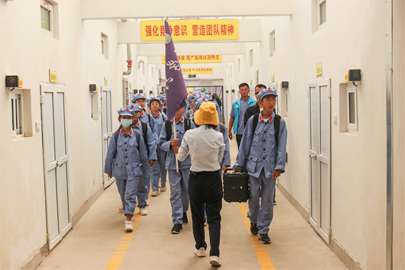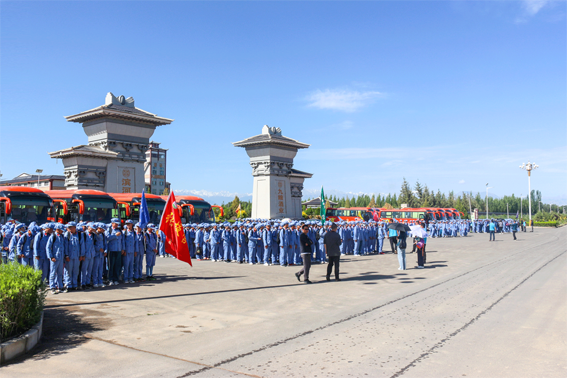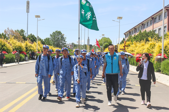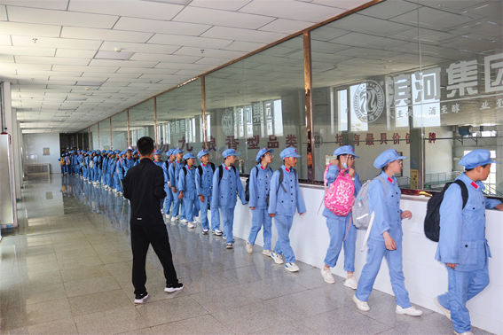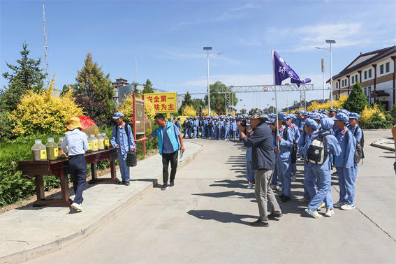 学生们在厂区门口集合进入景区