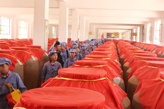 酒,早已成为民乐的符号。数千年来,当地先民沿袭着古老的九酝春酒法,并恪守自然天泽,秋收粮、冬入窖、春出酒,将粮食封存在写满光阴故事的窖池里,随着时间的推移,演变、升华、孕育出珍贵的滨河美酒。6月9日,张掖营地研学老师带领初中部学生共计780人,到达滨河九粮酒城,全体学生身着红军装,秩序井然,开展了一段以“匠心、传承、文化”为主题的研学活动。同学们在老师以及讲解员的带领下一起探索家乡悠悠酒香背后文化传承的故事。