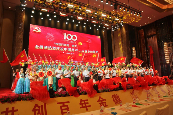 这次由金徽矿业党委、金徽酒党委联合主办,由金徽企业员工自编自导自演的“庆祝中国共产党成立100周年文艺晚会”分2场在金徽矿业、金徽酒业相继演出。整场晚会融合合唱、歌伴舞、朗诵、舞蹈等形式精彩上演。《没有共产党就没有新中国》《歌唱祖国》《党啊,亲爱的妈妈》《采矿工人有力量》《社会主义好》等红歌大合唱,《万疆》《灯火里的中国》《在灿烂阳光下》等舞蹈节目内容紧紧围绕歌颂党、歌颂祖国为主旋律,用豪迈的歌声展示出了新时代金徽人“感党恩、听党话、跟党走”的崇高理想和金徽酒业、金徽矿业广大党员群众坚定理想信念、勇担初心使命的精神风貌。节目内容丰富,精彩纷呈,整场晚会高潮迭起,曲浓情重的舞蹈,激烈震撼的合唱,精彩富有哲理的情景剧感染了所有在场的人,舞台下掌声雷鸣,喝彩声此起彼伏。