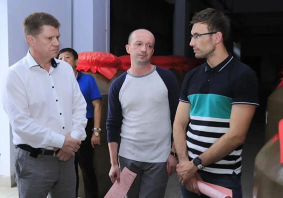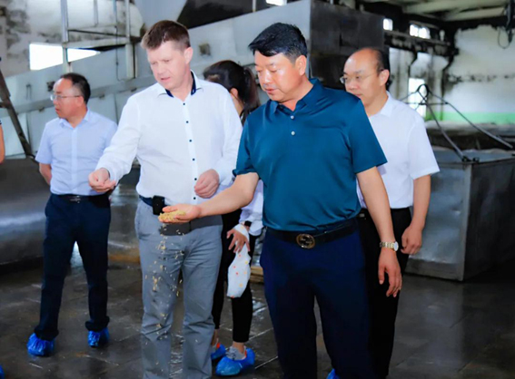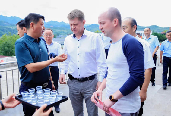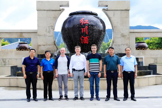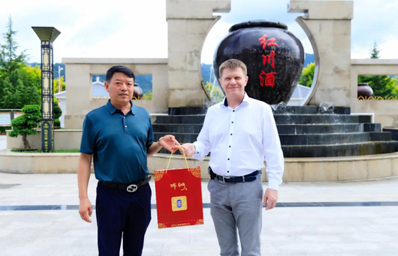 2021年7月10日下午,白俄罗斯驻华大使尤里?先科(Юрий Сенько)、白俄罗斯驻华使馆参赞德米特里·卡瓦廖诺克(Дмитрий Коваленок)、白俄罗斯驻华使馆一等秘书亚历山大·波特科威诺夫(Александр Подковыров)一行,在省政府外事办党组成员、副主任马聪,省政府外事办欧美大处处长赵军,省政府外事办欧美大处二级主任科员李艳,省政府外事办欧美大处四级主任科员呼如朝,陇南市委常委、副市长潘海峰,市政府副秘书长、外事侨务办主任冯虎明,县委常委、政府副县长陈超等的陪同下,莅临甘肃红川酒业有限责任公司参观考察。红川酒业公司总经理张永峰亲切会见白俄罗斯驻华大使一行,对大使先生一行的来访表示热烈欢迎,并邀请他们参观了白酒生产车间、吨坛库、包装车间等。