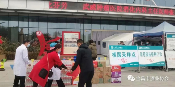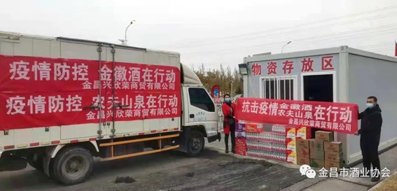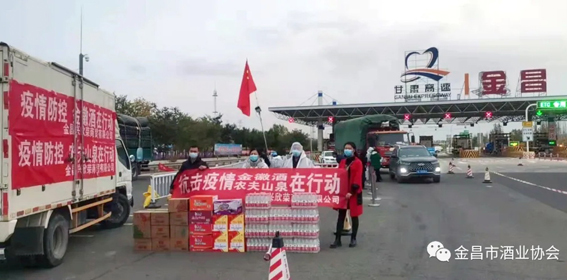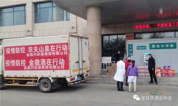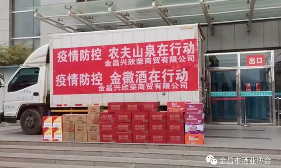 10月25日,金昌兴欣荣商贸有限公司与金徽酒业股份有限公司携手,前往金川公司职工医院、八冶医院、金昌市人民医院、金永高速金昌收费站检疫点、新华东路检疫点、金武高速金昌东收费站检疫点,慰问防疫一线的工作人员,为他们提供了农夫山泉水、东方树叶饮料、方便面、消毒酒精等物资。