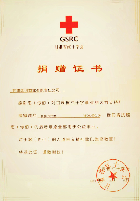 继10月28日,红川酒业向成县红十字会捐赠疫情防控资金10万元之后,今日(10月30日)上午,红川酒业前往甘肃省红十字总部,再捐款50万元,用于兰州、张掖、嘉峪关等我省疫情相对严重地区的疫情防控,其中30万元定向捐赠至兰州市红十字会、10万元定向捐赠至张掖市红十字会、10万元定向捐赠至嘉峪关市红十字会,红川酒业再次以实际行动和大爱之心,为我省的抗疫工作尽一份力量!