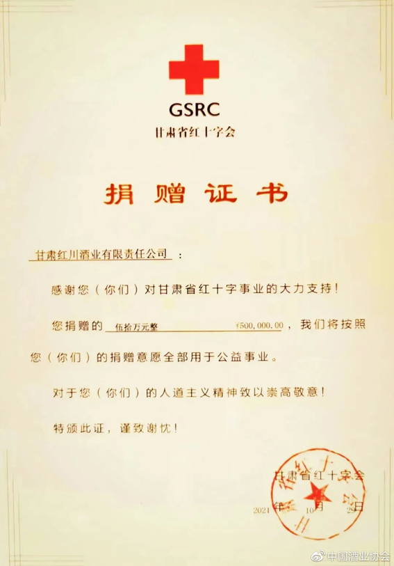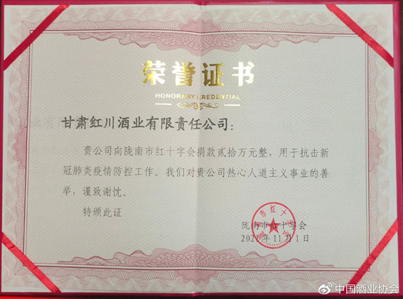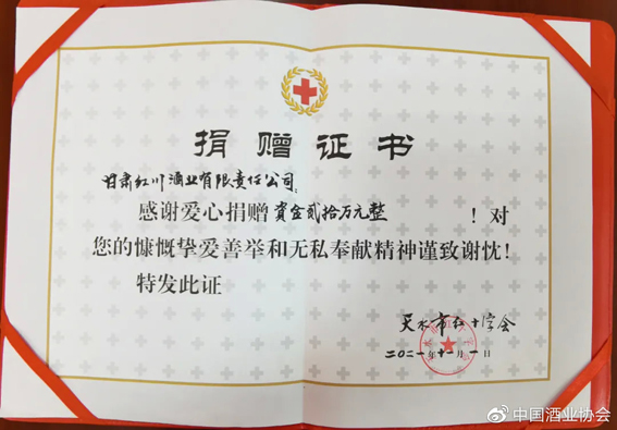 与此同时,为了积极应对新一轮疫情的波及和影响,红川酒业以高度的疫情警觉和“众志成城、抗疫有我”的使命担当,继10月28日向成县红十字会捐赠疫情防控资金10万元,10月30日向甘肃省红十字总部捐赠50万元(其中30万元定向捐赠兰州市红十字会、20万元分别捐赠张掖市和嘉峪关市红十字会)之后,又于2021年11月1日再次向天水市红十字会捐赠疫情防控资金20万元,向陇南市红十字会捐赠资金20万元(其中10万元用于宕昌县疫情防控工作)。以上捐赠共计100万元。