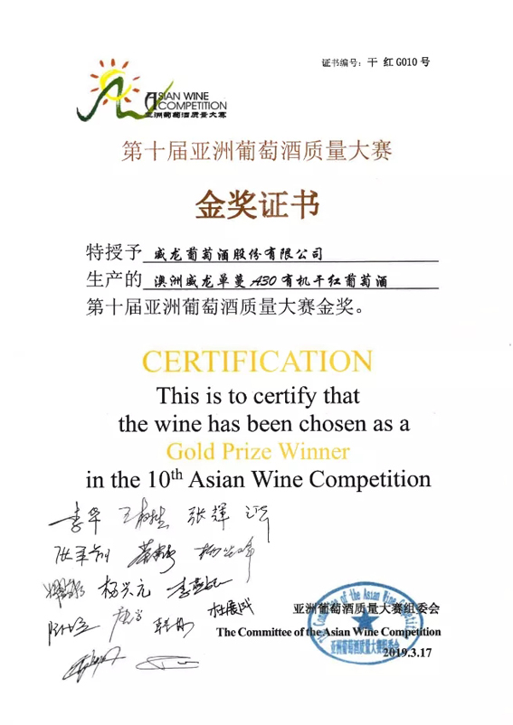 澳洲威龙单蔓A30荣获一金一银
