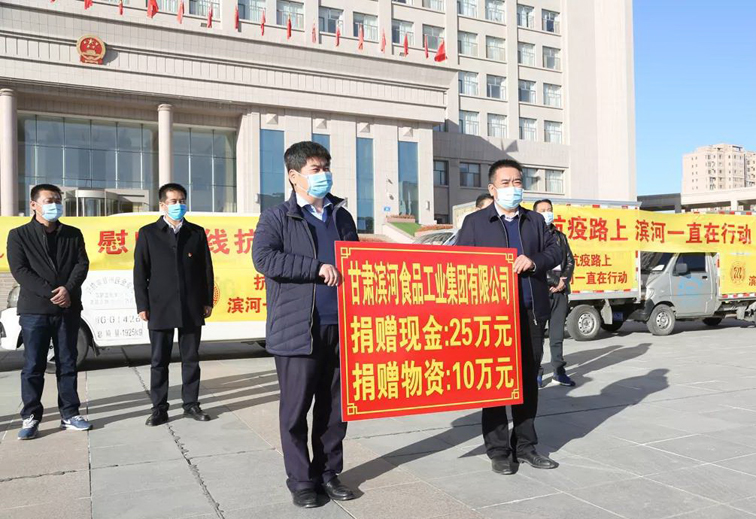 “滨”肩战疫 “河”力同行. 11月3日,滨河集团积极伸出援助之手,为张掖市甘州区政府捐赠了抗疫现金25万和保温杯、保温壶、方便面、帐篷、抽纸等价值10万的抗疫物资。甘州区区委副书记刘永君,甘州区区委常委、常务副区长田继新,甘州区区委常委、纪委书记蒋新民,甘州区人大副主任王迪东,财政、工信、卫健委负责同志及滨河集团张掖分公司总经理刘汉荣,副总经理雷向明共同参加了捐赠仪式。