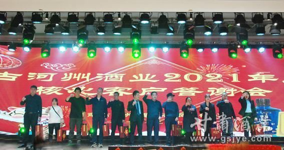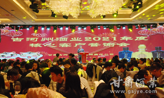 【原创】甘肃酒业网讯:新年伊始的陇原大地,处处牡丹美酒飘香。1月11日,甘肃古河州酒业2021年度兰州市场核心客户答谢会在兰州隆重举行。甘肃省酒类流通产业促进中心主任高少华、兰州市市场监督管理局副调研员曹继勇、甘肃省酿酒工业协会副理事长杨正平、甘肃省酒业协会常务副会长党金林、甘肃古河州酒业有限责任公司总经理朱绍俊、古河州酒业销售公司王进堂总经理等领导及兰州核心客户近260余人欢聚一堂,共同见证了这一盛会,品鉴古河州的醇香美酒。