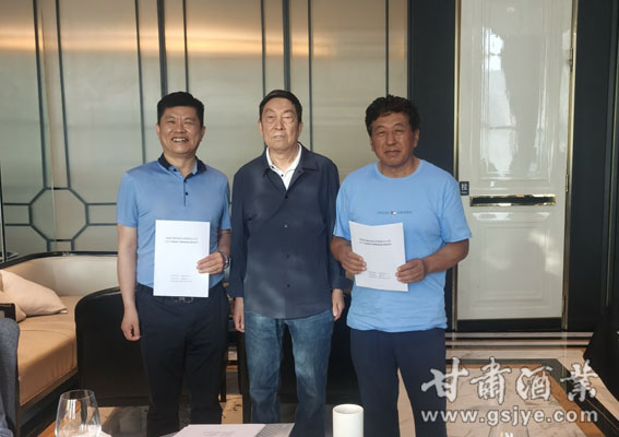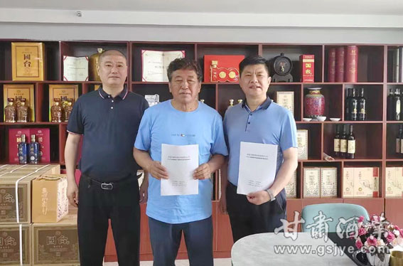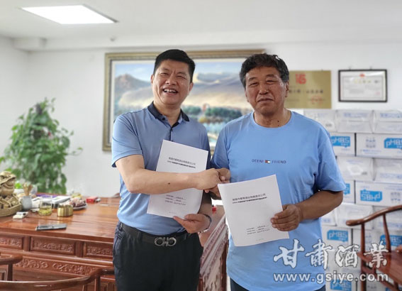 【原创】甘肃酒业网:2022年5月26日,甘肃亿得商贸有限公司与敦煌市葡萄酒业有限责任公司《2022莫高窟干红葡萄酒区域代理》合作协议在兰州成功签约,甘肃省酒业协会副会长、甘肃亿得商贸有限公司董事长王洪清与敦煌市葡萄酒业有限责任公司董事长钟学军共同签约。