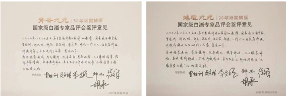 国家级白酒专家对青云九九、鸿运九九鉴评意见